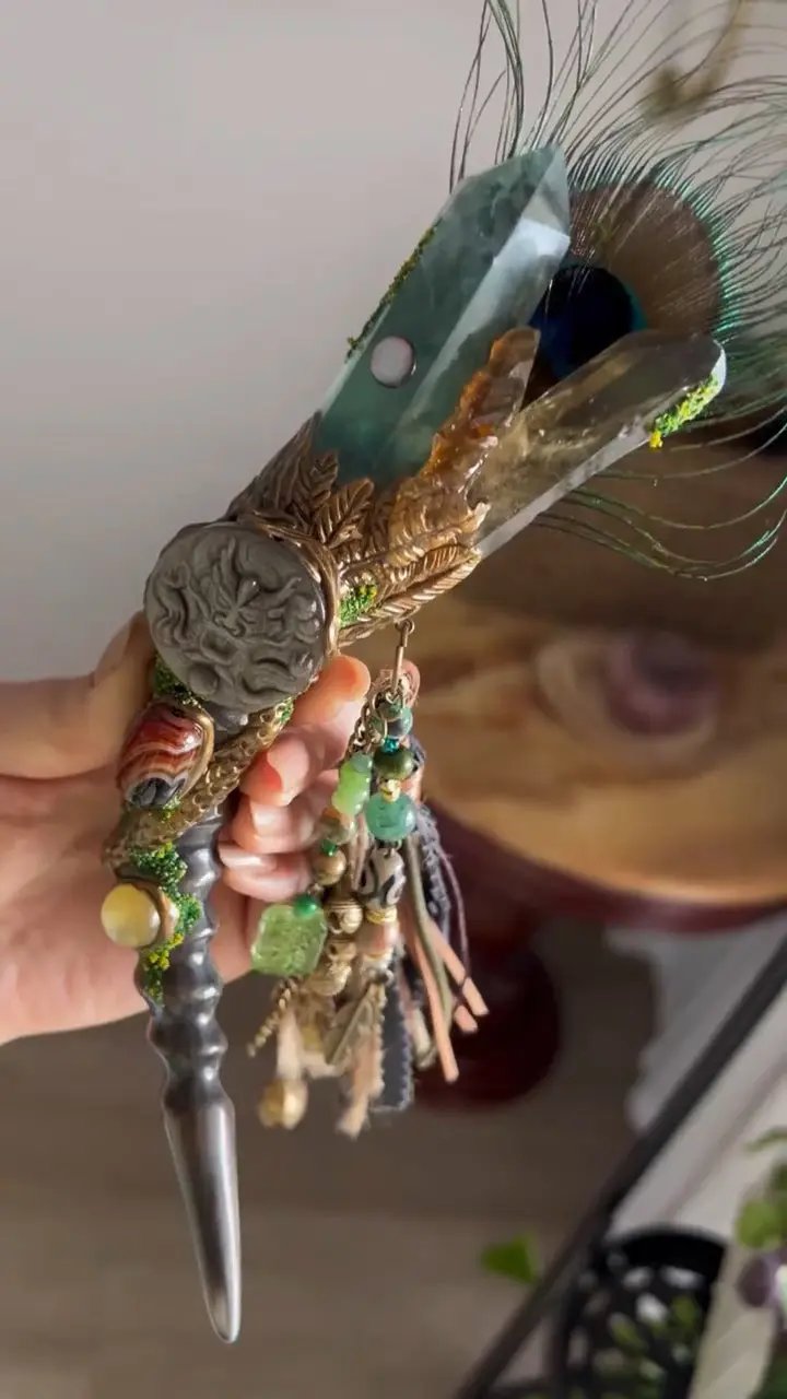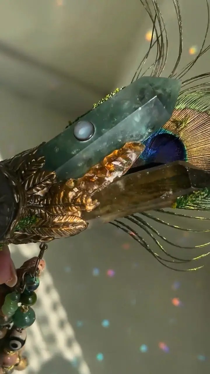 Artisan Accents: Vintage-style metalwork, hand-strung bead charms, and iridescent peacock feathers add layers of visual and energetic depth.