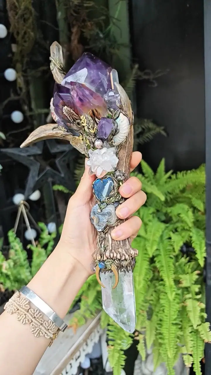 Imagine a scepter where deep purple amethyst (the stone of spiritual intuition) weaves with weathered antler (the totem of ancient wild wisdom) and glistening clear quartz (the master energy amplifier)—a handcrafted piece that feels carved from the heart of an enchanted old-growth forest, touched by moonlit rituals and stardust. This isn’t just a decorative wand—it’s a tangible bridge between earth’s wild magic, spiritual intuition, and the quiet power of ancient nature. Whether you’re a metaphysical practitioner, a crystal enthusiast, or a collector of the extraordinary, the Thornmoon Scepter will wrap you in protective energy, sharpen your intuition, and root you in the wisdom of the natural world.